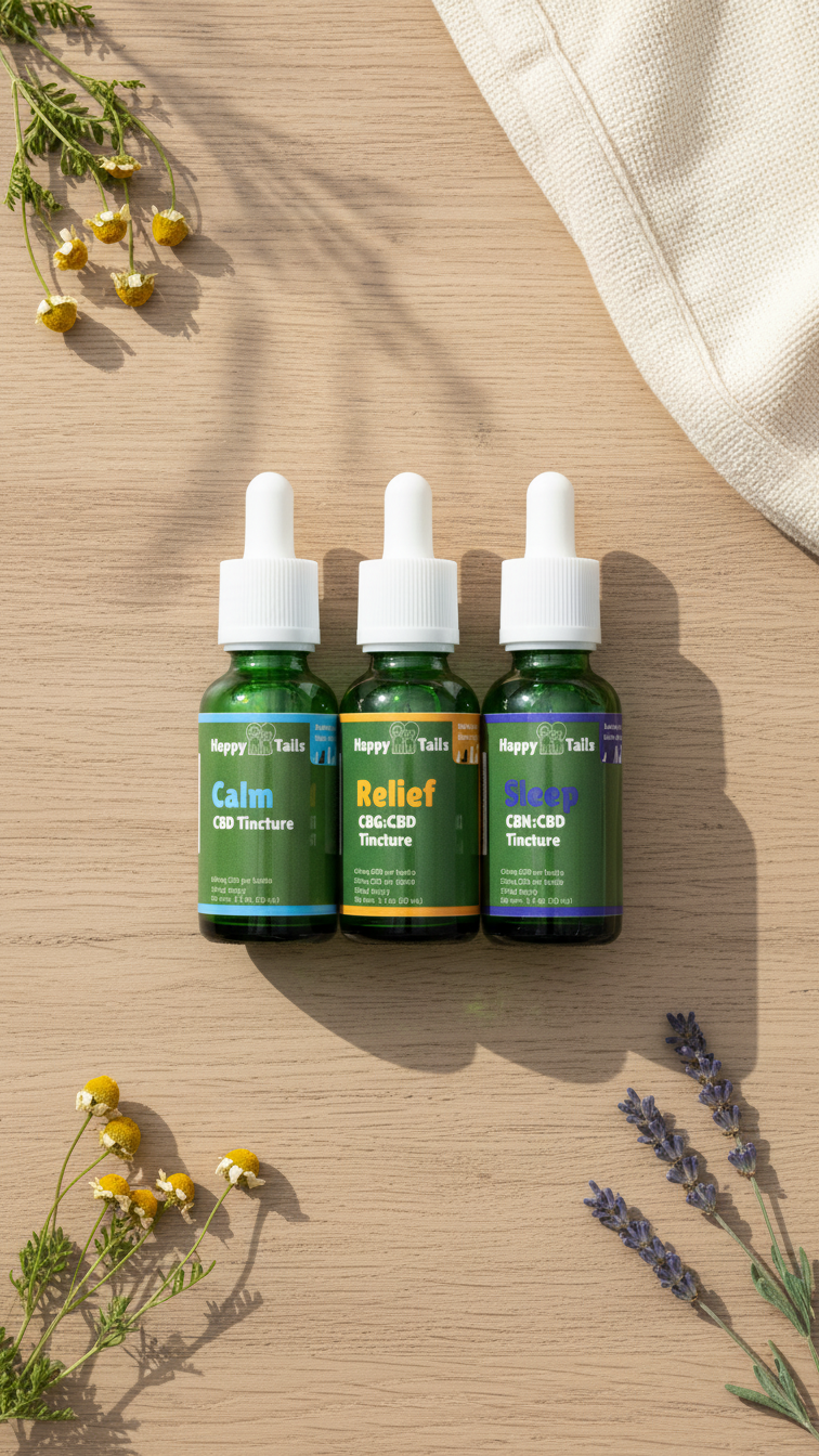 At Happy Tails, we care deeply about what goes into your pet’s body, and what doesn’t. Our tinctures are 100% THC Free and made with pure CBD, CBG, and CBN isolates so your pet gets gentle support without any “high.”